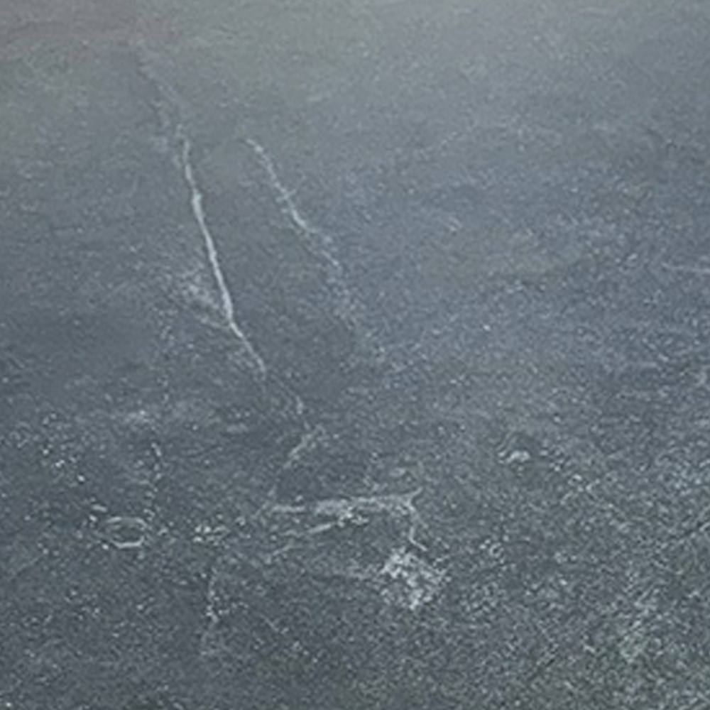 Mesa com tampo em pedra sinterizada. Base em alumínio.